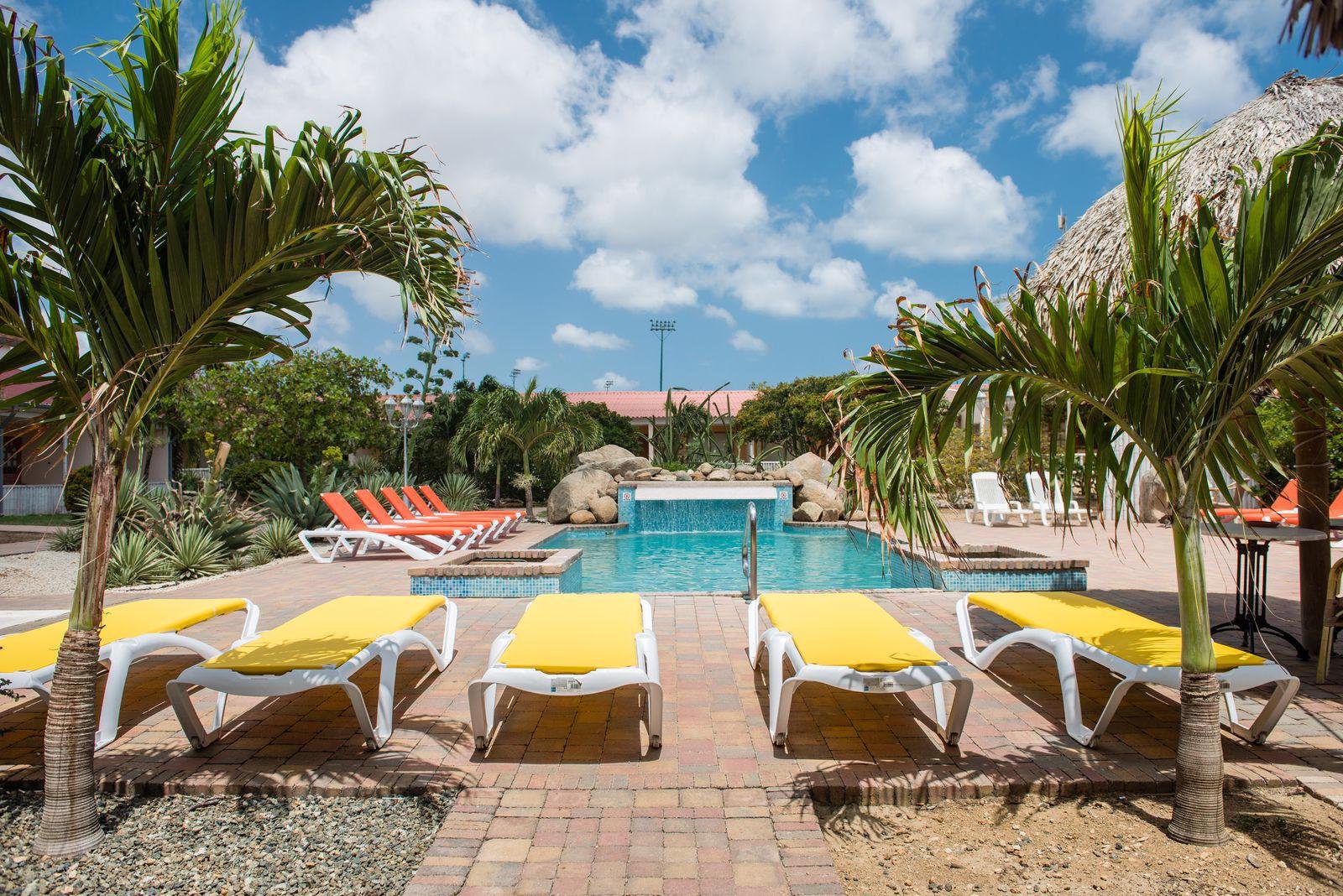 Ervaar de knusse sfeer op het aangename park van de 3-sterrenappartementen Camacuri Residence. Hier ga je naartoe als je toe bent aan een weekje zon op het altijd levendige Oranjestad op Aruba. Laat je verwelkomen door de mooie tuin; loop over het pad, waar je je weg vindt naar het zwembad. In de verte hoor je de waterval al borrelen en ontstijgt je een gevoel van een welverdiend vakantiegevoel. Leg je handdoek op een comfortabel ligbed en duik de verkoeling van het zwembad tegemoet. Breng je dagen in de zon dobberend door in het felblauwe water. Er zijn ook BBQ’s aanwezig op het park; waarmee je de lekkerste grillgerechten maakt en kunt genieten van de gezelligste diners in de buitenlucht. Hier beleef je een onbezorgde tijd en geniet je volledig van het eiland Aruba! Boek nu jouw verblijf bij Camacuri Residence.