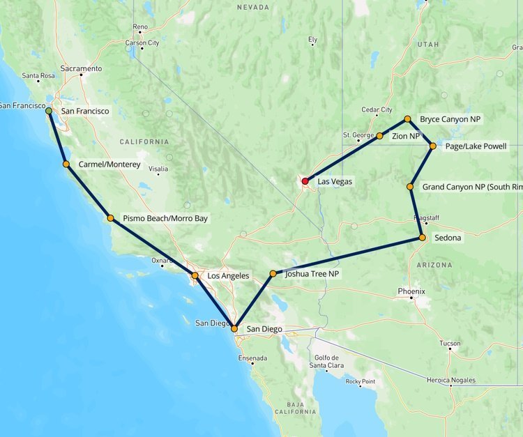 Beleef een onvergetelijke camperreis met het gezin door het zuidwesten van de Verenigde Staten. Uw reis begint in het sfeervolle San Francisco, waar u de stad kunt verkennen voordat u in uw camper stapt. U rijdt langs de Californische kust met stops in Carmel, Monterey en Pismo Beach, met veel mogelijkheden voor ontspanning en avontuur.