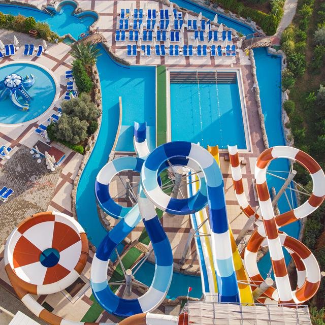 Hotel Kahya Resort Aqua in de buurt van Alanya, ligt direct aan het strand en is een uitstekende keuze voor een ontspannen én levendige familievakantie. Met vier zwembaden, meerdere glijbanen, een lazy river en een fijn kinderbad is er altijd iets te doen. Dankzij het uitgebreide ultra all inclusive-concept geniet je van heerlijke buffetten, snacks en drankjes op elk moment van de dag.