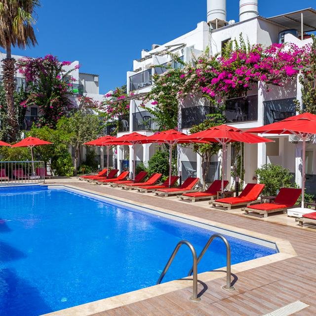 Hotel The Hello ligt in Gumbet, Bodrum, direct aan het prachtige strand. Je geniet hier van een gezellige sfeer, midden in een levendige omgeving vol winkels, bars en uitgaansgelegenheden. Het hotel combineert comfort met een relaxte vakantievibe, perfect voor wie alles binnen handbereik wil.