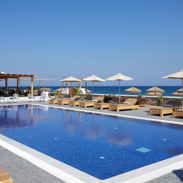 Liggend aan het zwarte strand, ontkom je in Sea Breeze Santorini niet aan het spectaculaire uitzicht. Bekijk dan ook zeker de zonsondergang vanuit je eigen zwembad of hottub. Lekker even relaxen? Doe mee met de yogalessen, of ga naar de spa om van een stoombad of massage te genieten. Het gastvrije personeel vertelt je graag wat je kunt beleven in de omgeving. Zo kun je bijvoorbeeld een fiets huren, een cruise op een jacht aanvragen, of naar een wijnproeverij gaan. Sluit de dag af in het restaurant waar heerlijke Griekse en Mediterrane gerechten worden geserveerd, uitkijkend over de kristalblauwe zee. Ook voor de kleintjes is er genoeg om van te smullen!